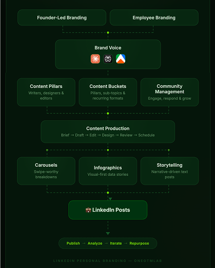 You know you should post. You don't have time. When you do, it sounds like a press release. We fix that. We write it, we schedule it, we track what converts, so you just show up as the expert.